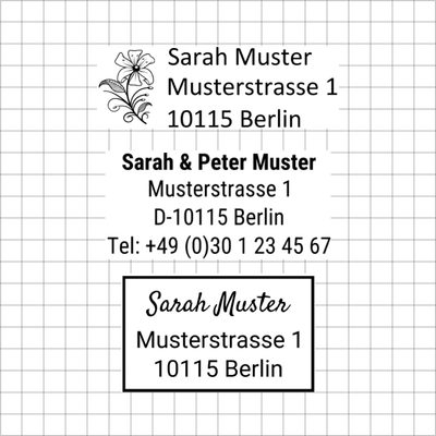 EASY ORDERING: You design your stamp – and our system automatically shows you the matching models. In just a few clicks, you can find exactly the right stamp for your impression size – whether it's a company stamp, address stamp or wooden stamp.