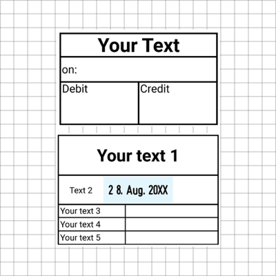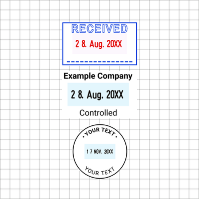 We also offer date stamps with standard texts, editable templates and accounting stamps as well as multi word stamps with several texts and simple date stamps without text.