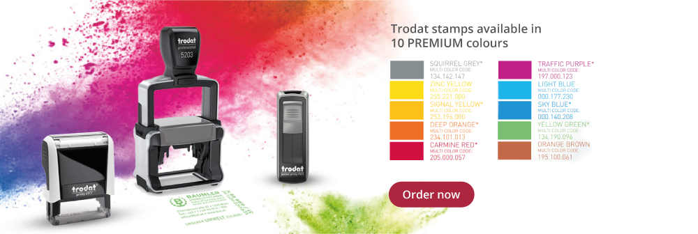 In our online shop you can order Trodat stamps in both classic ink colours and the refreshing PREMIUM colours.