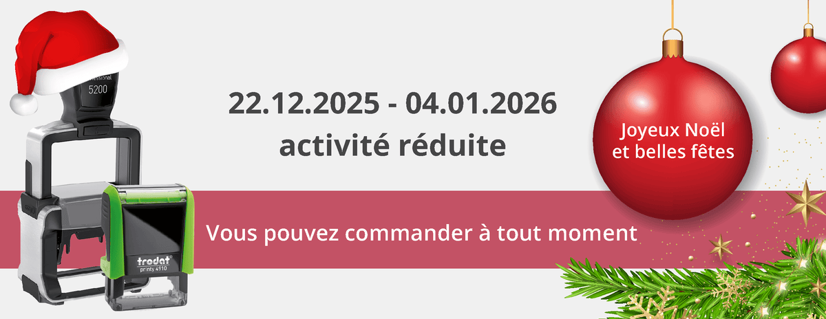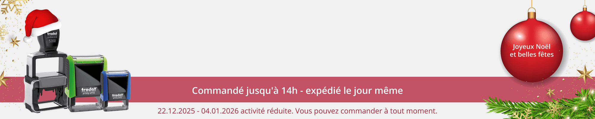 Dans notre boutique en ligne, vous trouverez principalement des tampons Trodat et Colop, deux marques qui sont depuis des années synonymes de qualité fiable au quotidien au bureau. Découvrez dans nos catégories les modèles proposés par ces deux fabricants. Nos tampons en bois sont également très appréciés : classiques, durables et polyvalents, ils peuvent être utilisés aussi bien au travail que dans la vie quotidienne.